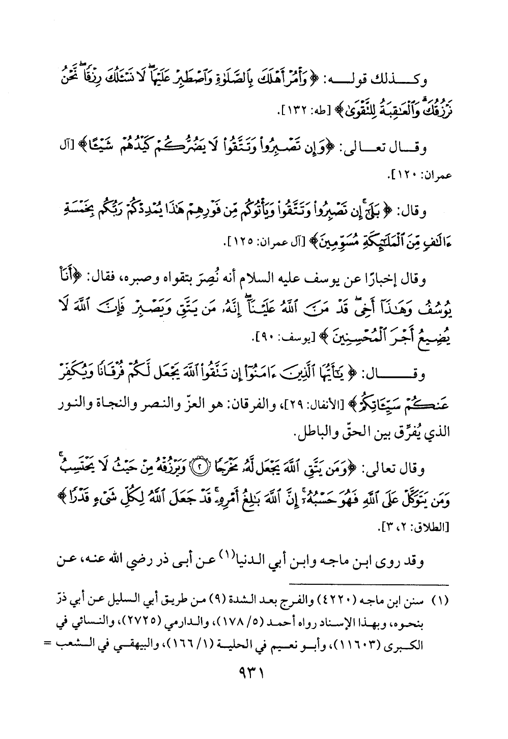 وقال تعالى: {وَإِنْ تَصْبِرُوا وَتَتَّقُوا لَا يَضُرُّكُمْ كَيْدُهُمْ شَيْئًا} [آل عمران: 120].