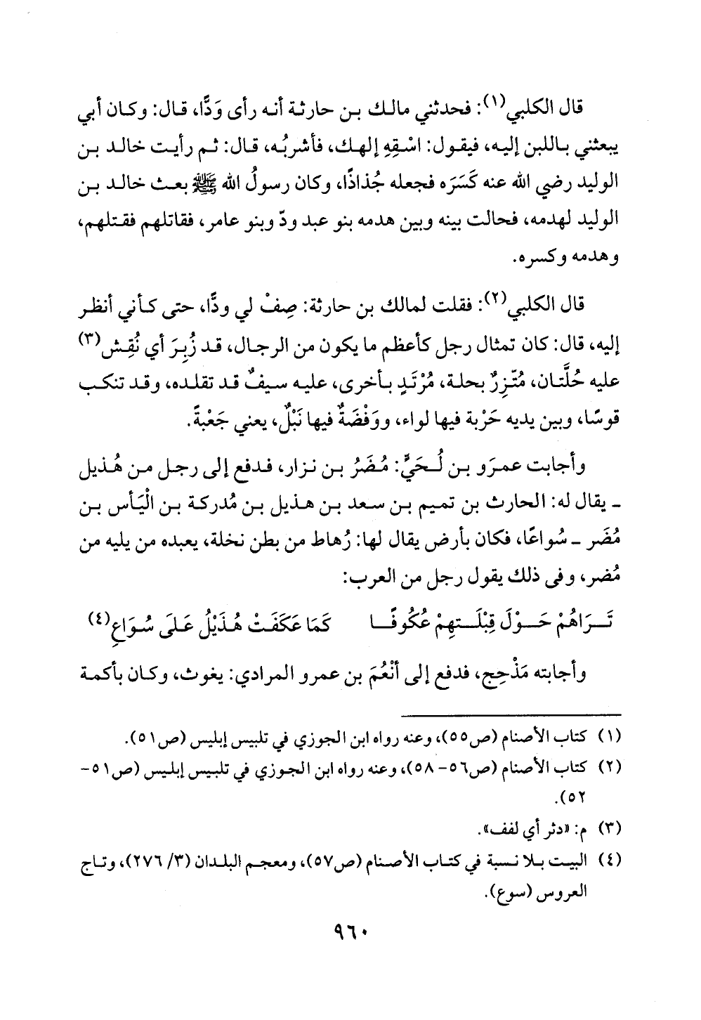 (¬1) كتاب الأصنام (ص 55)، وعنه رواه ابن الجوزي في تلبيس إبليس (ص 51).