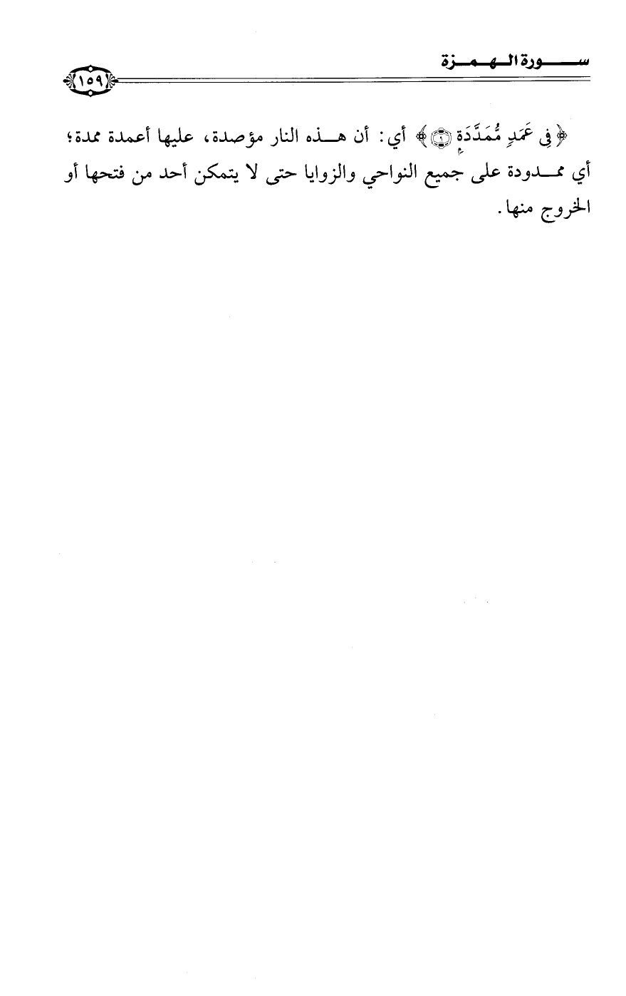 {فِي عَمَدٍ مُمَدَّدَةٍ} أي: أن هذه النار مؤصدة، عليها أعمدة ممدة، أي: ممدودة على جميع النواحي والزوايا حتى لا يتمكن أحد من فتحها أو الخروج منها.