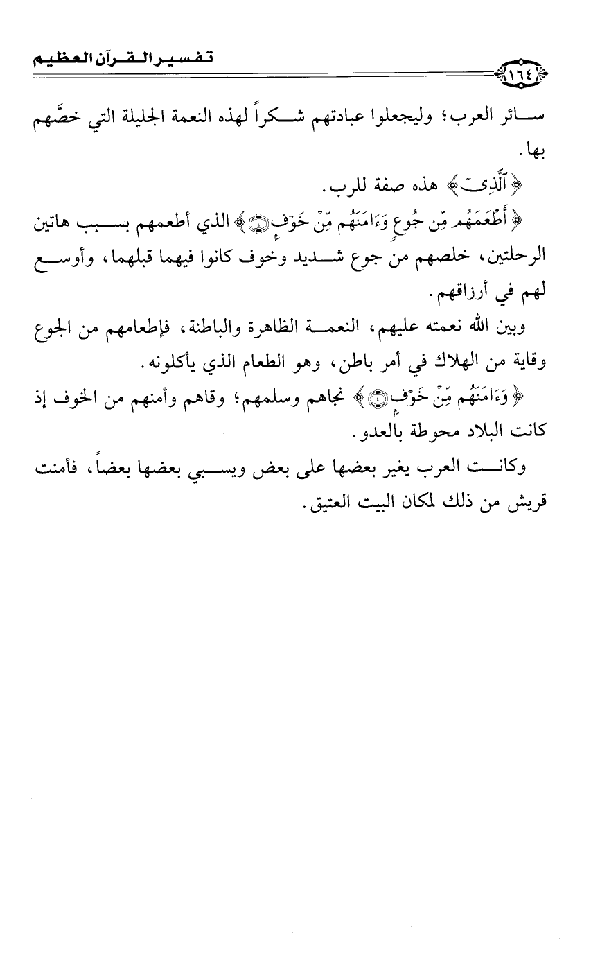 وكانت العرب يغير بعضها على بعض ويسبي بعضها بعضًا، فأمنت قريش من ذلك لمكان البيت العتيق.
