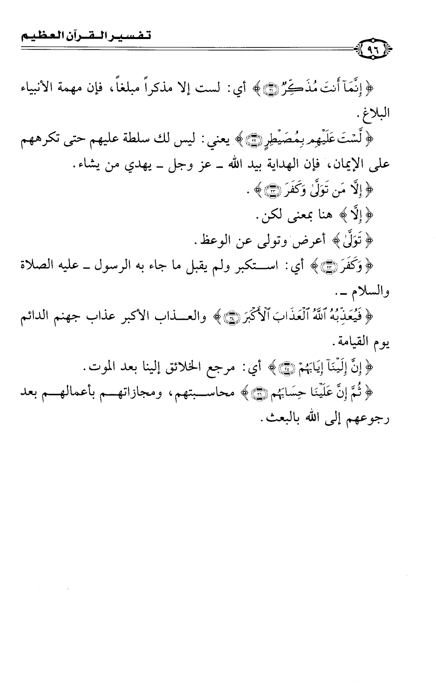 {لَسْتَ عَلَيْهِمْ بِمُسَيْطِرٍ} يعني: ليس لك سلطة عليهم حتى تكرههم على الإيمان، فإن الهداية بيد الله عز وجل يهدي من يشاء.