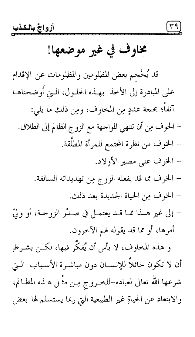 - الخوف مِن أن تنتهي المواجهة مع الزوج الظالم إلى الطلاق.