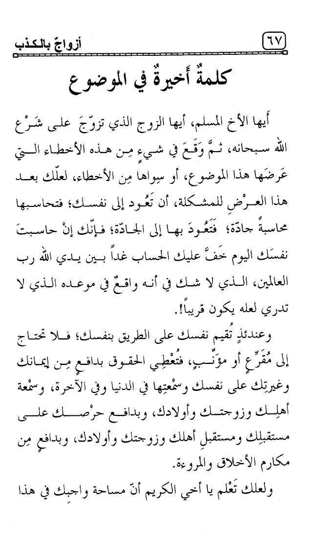 أَيها الأخ المسلم، أيها الزوج الذي تزوّجَ على شَرْع الله سبحانه، ثمَّ وَقَعَ في شيءٍ مِن هذه الأخطاء التي عَرضَها هذا الموضوع، أو سِواها مِن الأخطاء، لعلّك بعد هذا العرْضِ للمشكلة، أن تَعُود إلى نفسك؛ فتحاسبها محاسبةً جادّة؛ فَتَعُودَ بها إلى الجادّة؛ فإنّك إنْ حاسبتَ نفسَك اليوم خَفَّ عليك الحساب غداً بين يدي الله رب العالمين، الذي لا شك في أنه واقعٌ في موعده الذي لا تدري لعله يكون قريباً!.