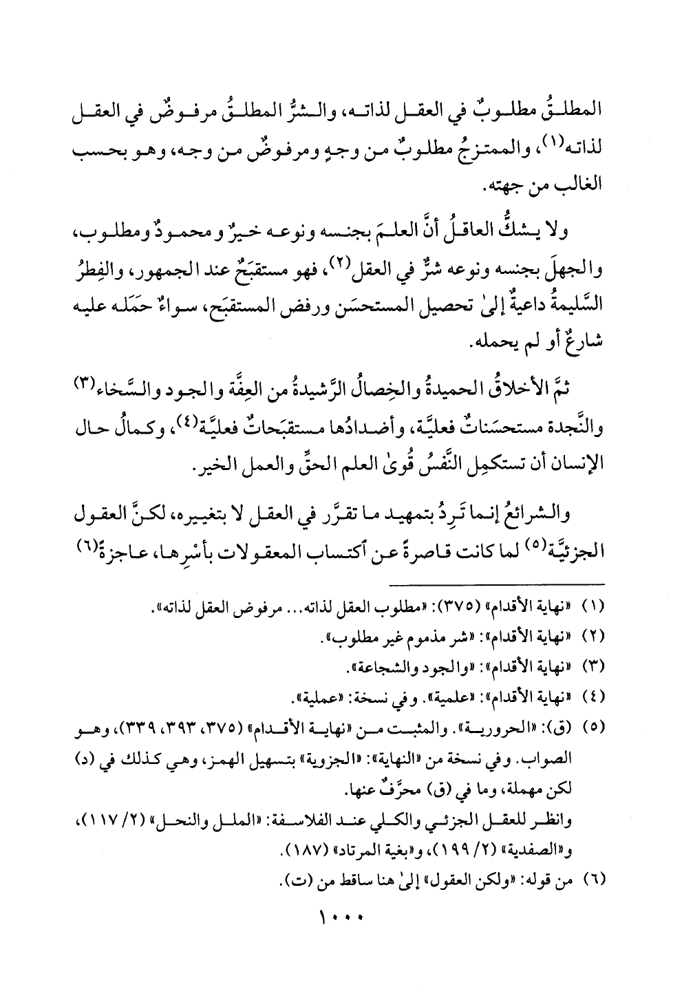 (1) "نهاية الاقدام " (375): "مطلوب العقل لذاته. . . مرفوض العقل لذاته).
