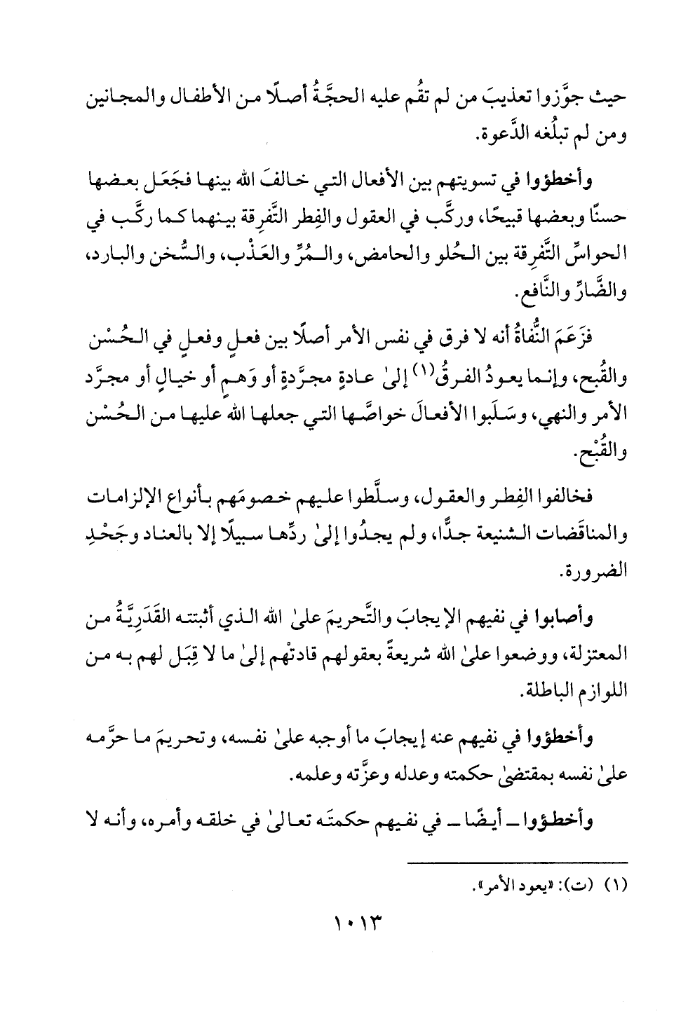 وأصابوا في نفيهم الا يجاب والتحريم على الله الذي اثبتته القدرية من