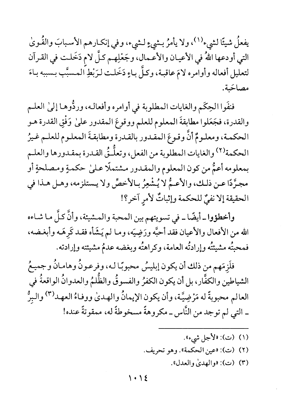 وأخطؤوا - أيضا - في تسويتهم بين المحبة و لمشيئة، و ن كل ما شاءه