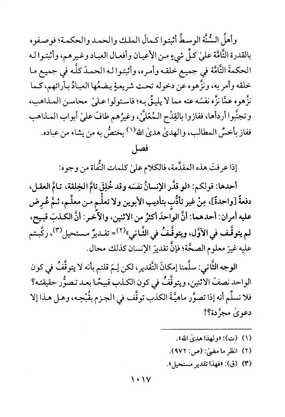 وأهل السنة الوسط أثبتوا كمال الملك وا لحمد وا لحكمة؛ فوصفوه