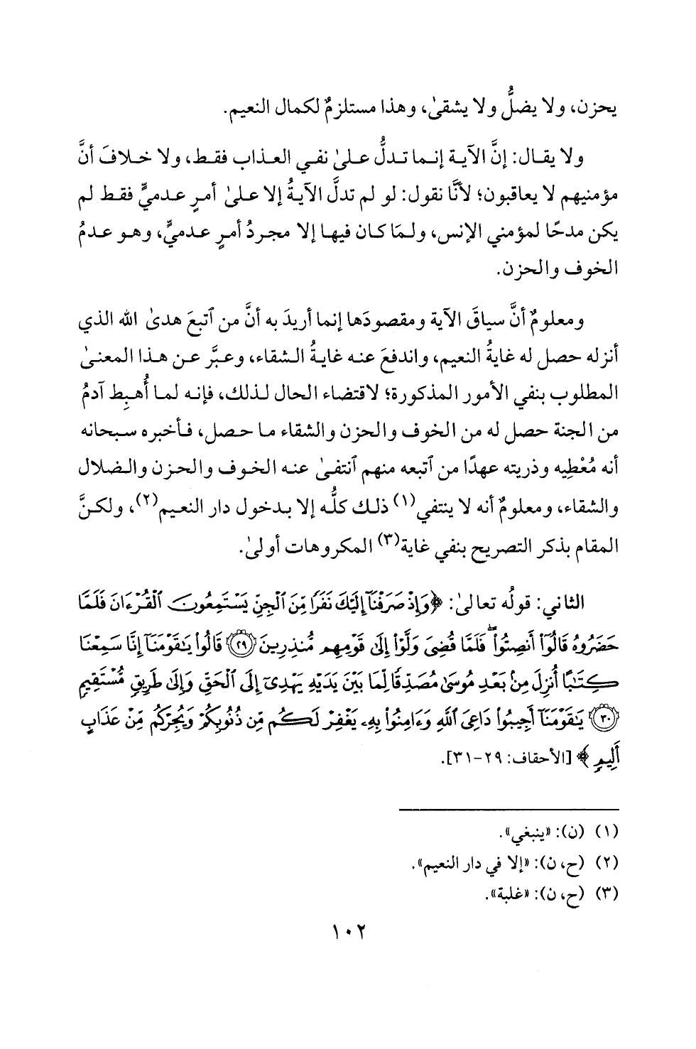 يحزن، ولا يضل ولا يشقى، وهذا مستلزم لكمال النعيم.