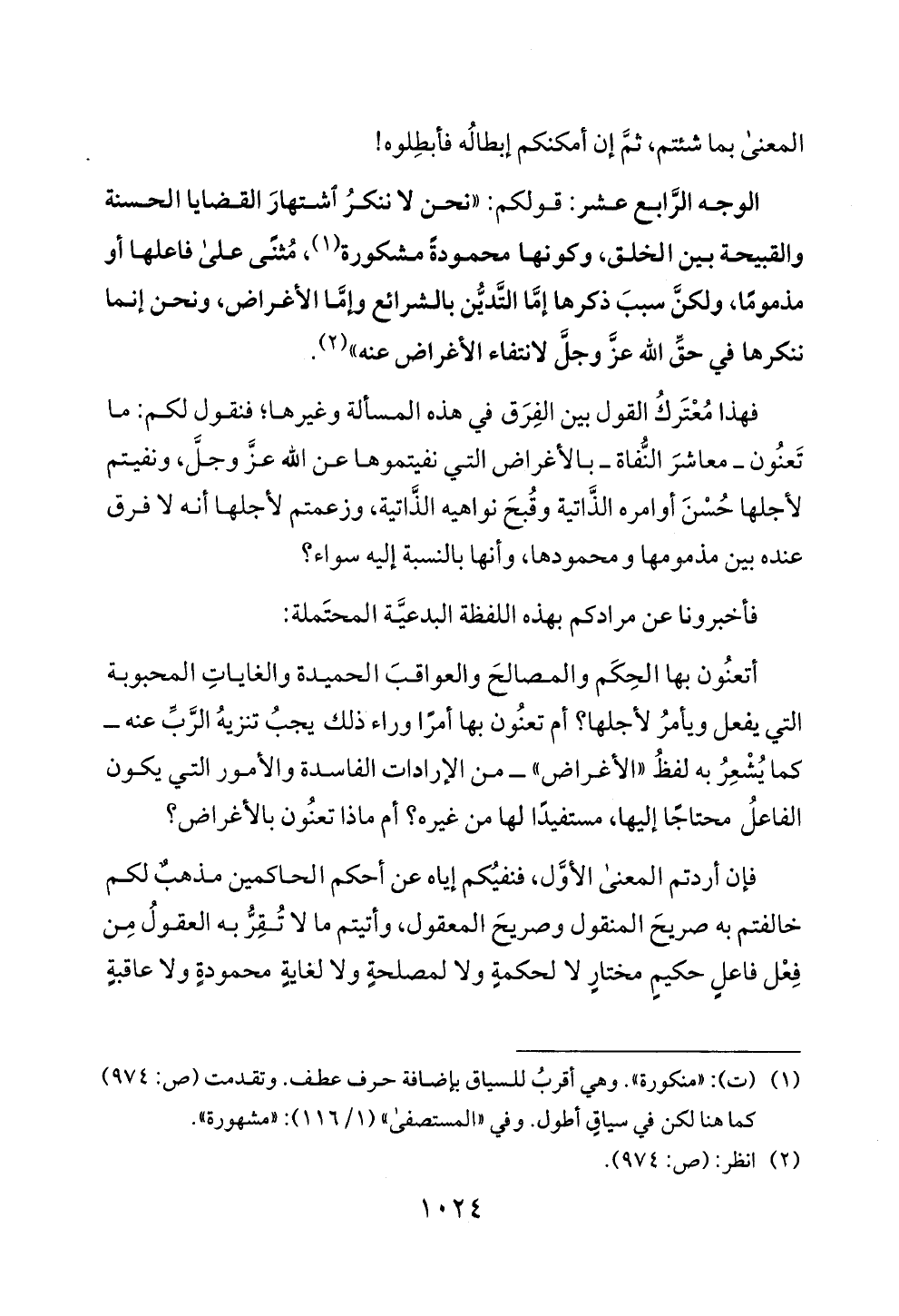 تعنون - معاشر النفاة - بالاغراض التي نفيتموها عن الله عز وجل، ونفيتم