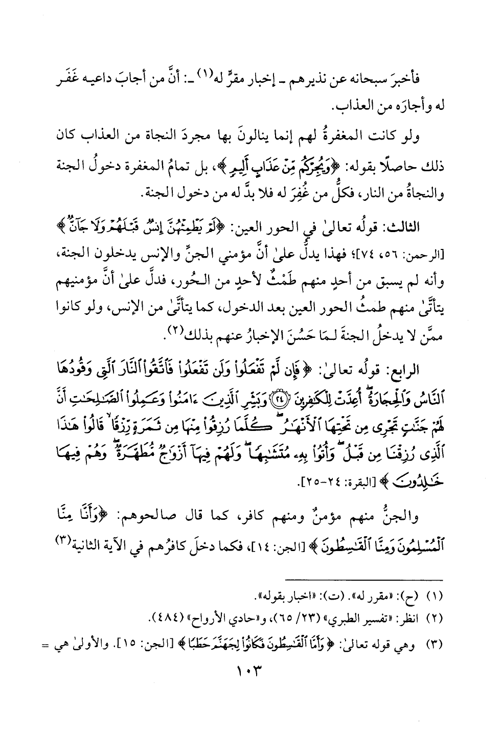 (3) وهي قوله تعا لى: < وأما لقسطون ف! نو لجهنم حظبا > [ا لجن: 15]. و 1 لاو لى هي-
