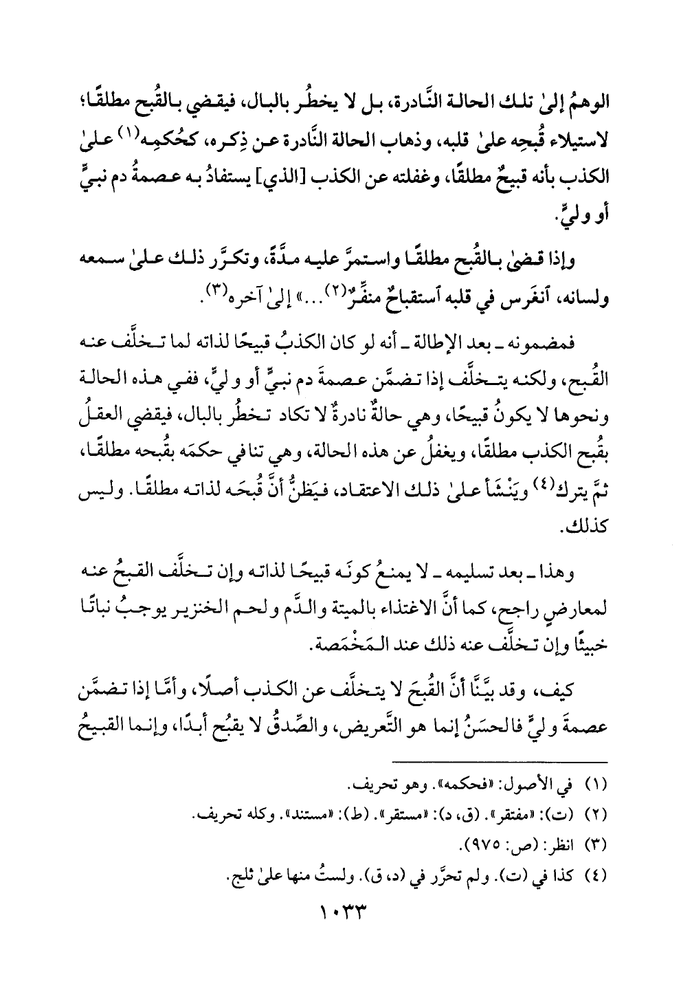 القبح، ولكنه يتخلف إذ تضمن عصمة دم نبي أو ولي، ففي هذه الحالة
