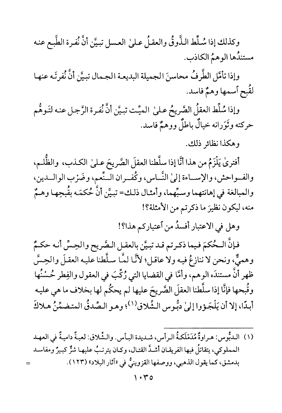 فإن الحكم فيما ذكرتم قد تبين بالعقل الصريح وا لحس! أنه حكم