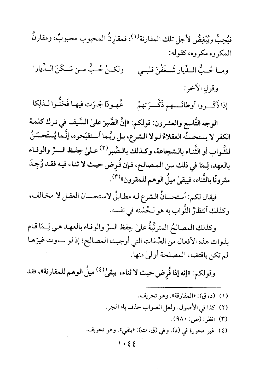 وقولكم: "انه اذا فرض حيث لا ثناء، يبقى (4) ميل الوهم للمقارنة "، فقد