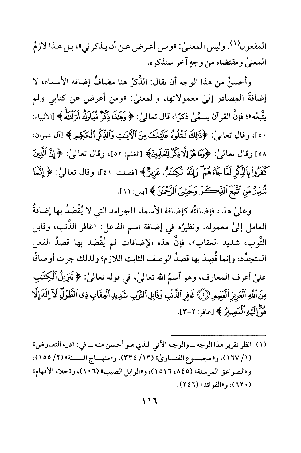 التوب، شديد العقاب "، فان هذه الاضافات لم يقصد بها قصد الفعل