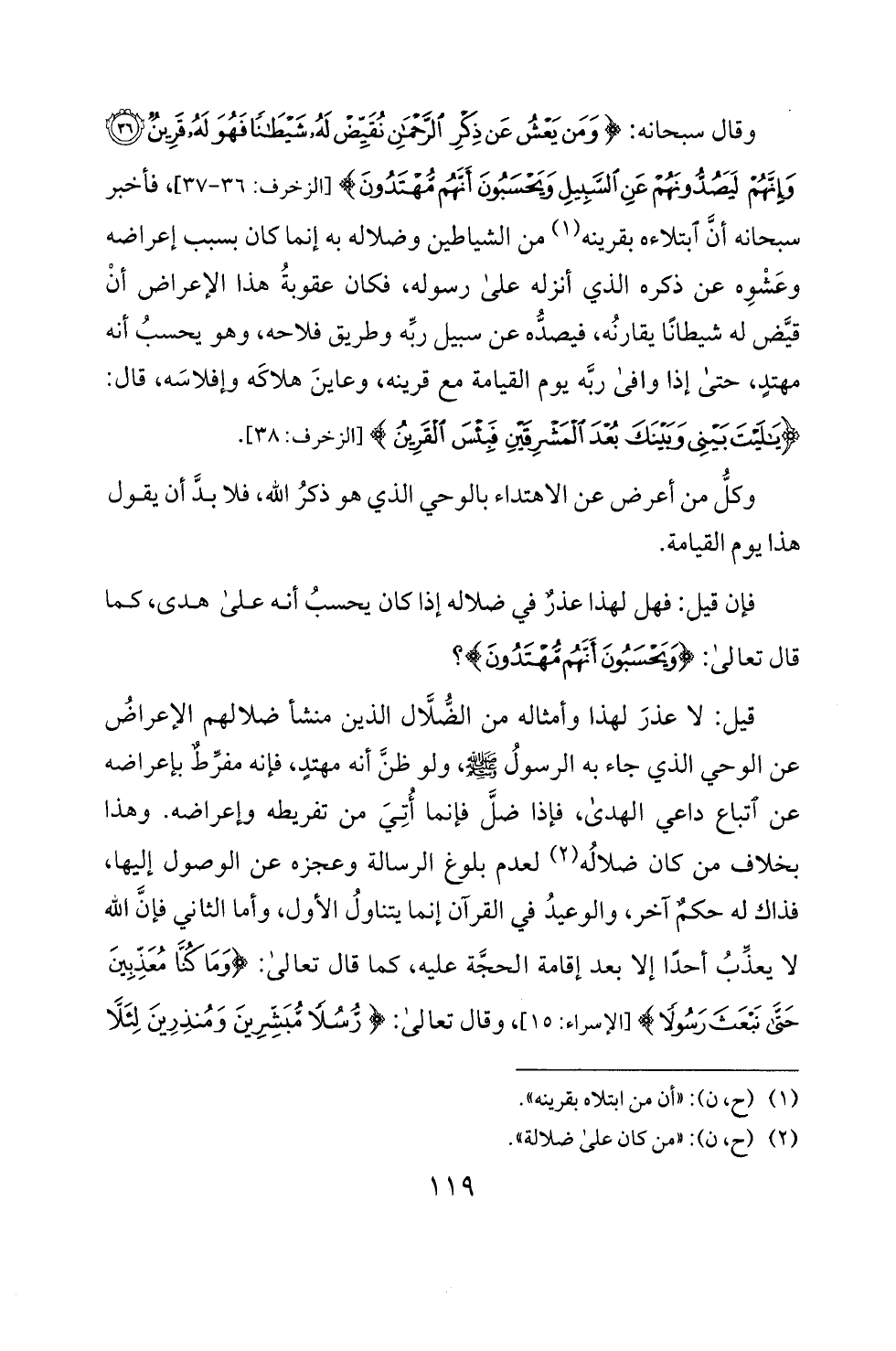 وإنهم لصذوخمغ عن السبل وتحسبون أتهم مهتدون) [الزخرف: 36 - 37]، فاخبر