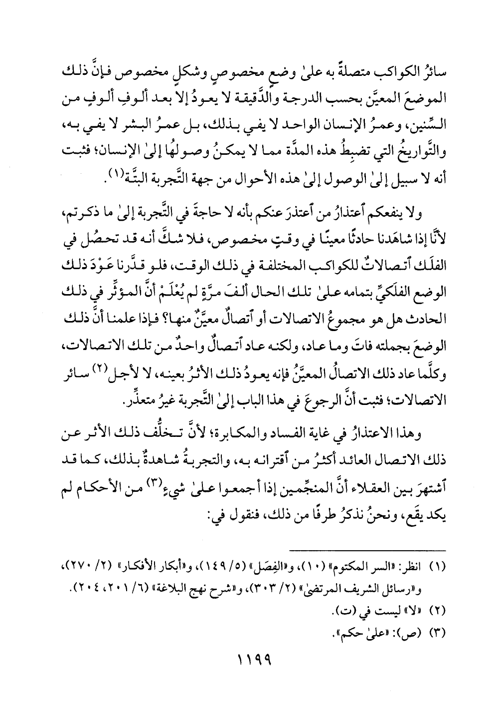 الوضع الفلكي بتمامه على تلك الحال ألف مرة لم يعلم أن المؤثر في ذلك