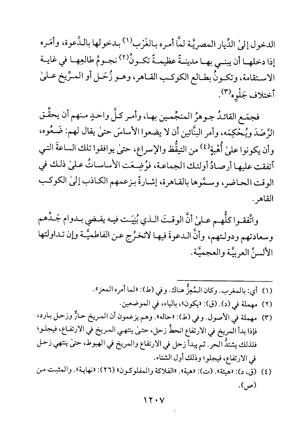 الوقت ا لحاضر، وسموها بالقاهرة، إشارة بزعمهم الكاذب إلى الكوكب