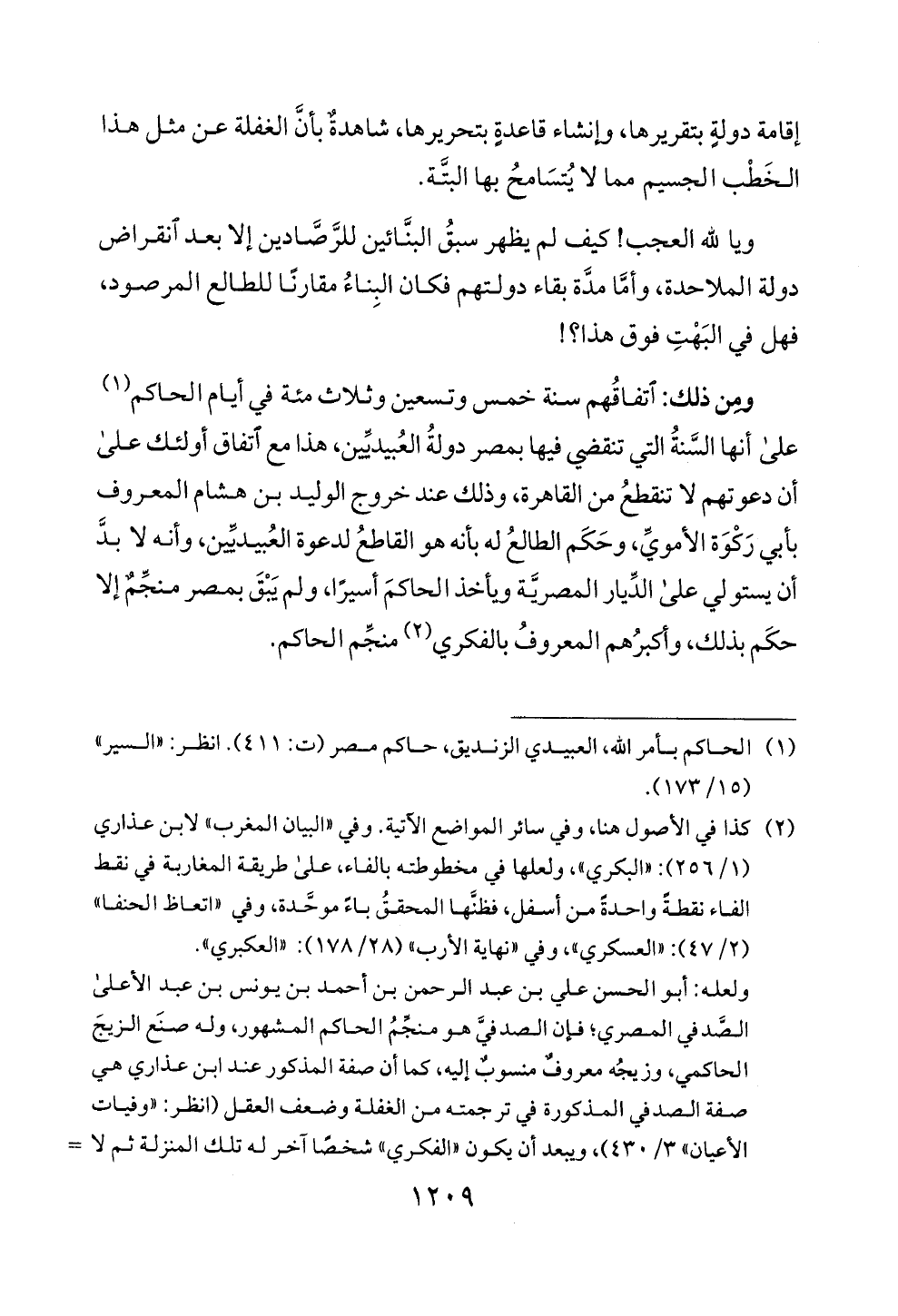 حكم بذلك، واكبرهم ا لمعروف بالفكري (2) منجم ا لحاكم.