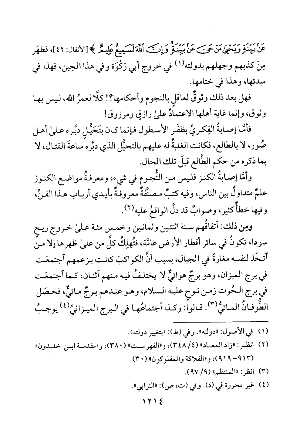 فهل بعد ذلك وثوق لعاقل بالنجوم وأحكامها؟! كلا لعمر الله، ليس بها