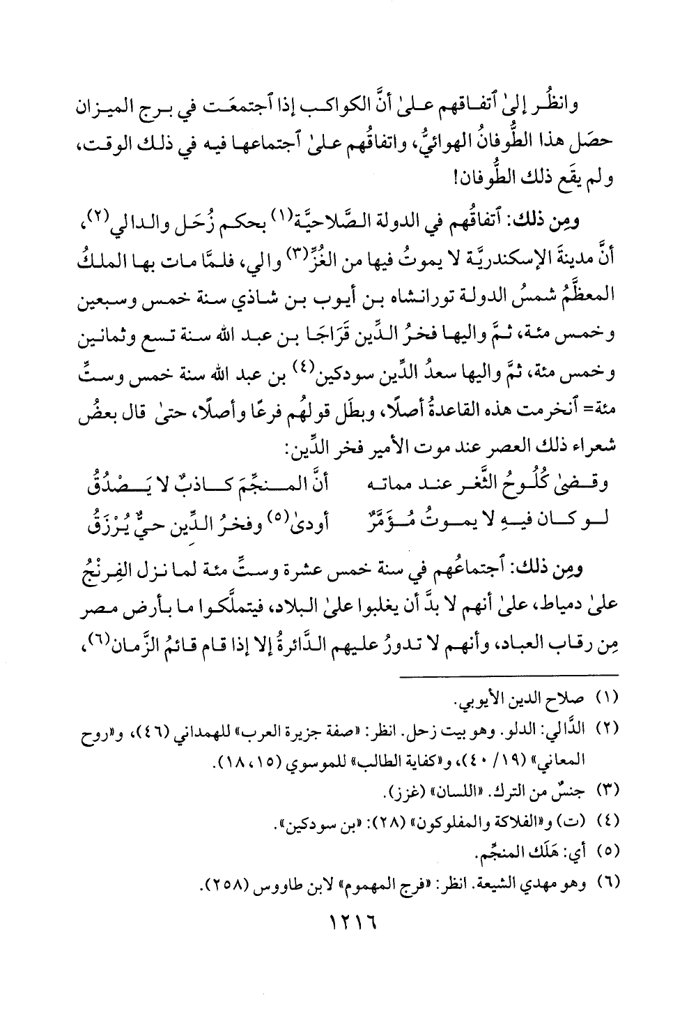 ومن ذلك: اتفاقهم في الدولة الصلاحية (1) بحكم زحل والدا لي (2)،