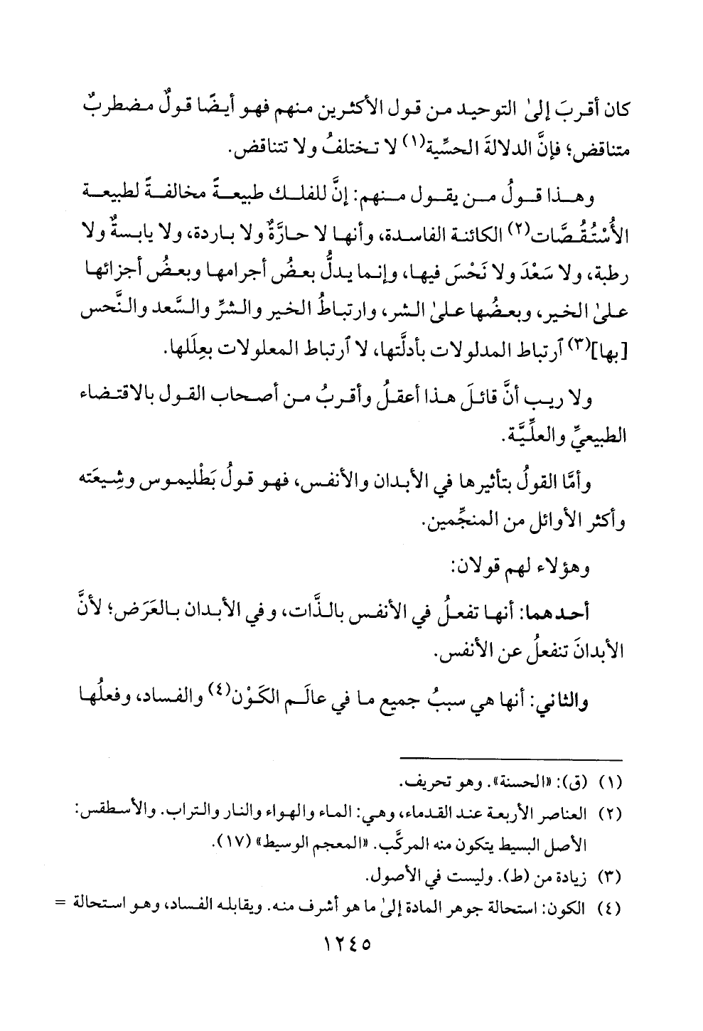 و ما 1 لقول بتأثيرها في الابدان والانفس، فهو قول بطليموس وشيعته