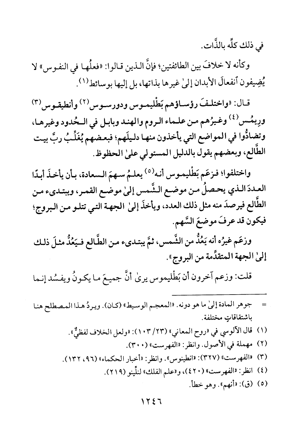 قلت: وزعم اخرون أن بطليموس يرى أن جميع ما يكون ويفسد إنما
