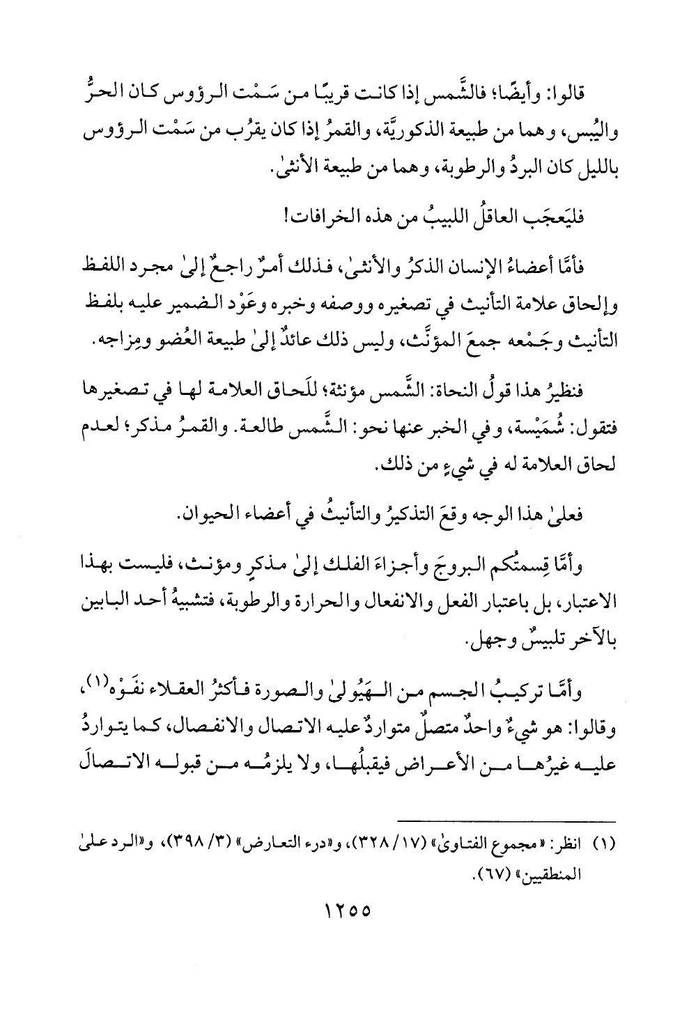 (1) انظر: " مجموع الفتاوى " (17/ 328)، و (درء التعارض " (3/ 398)، و" الرد على