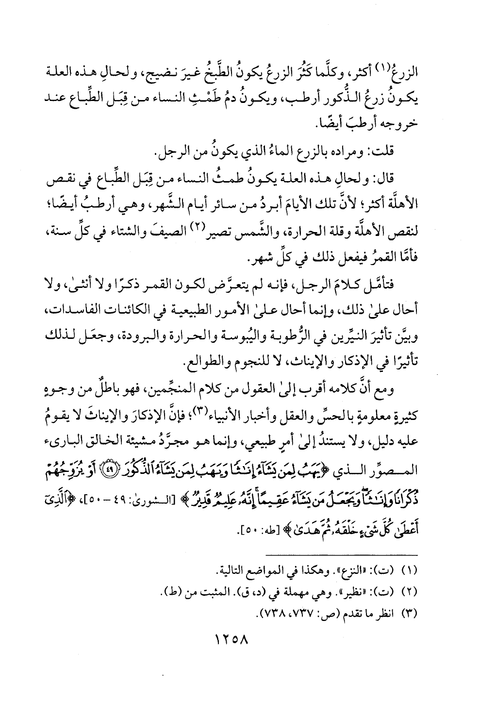 كثيرة معلومة با لحش والعقل وأخبار الانبياء (3)؛ فان الاذكار والايناث لا يقوم