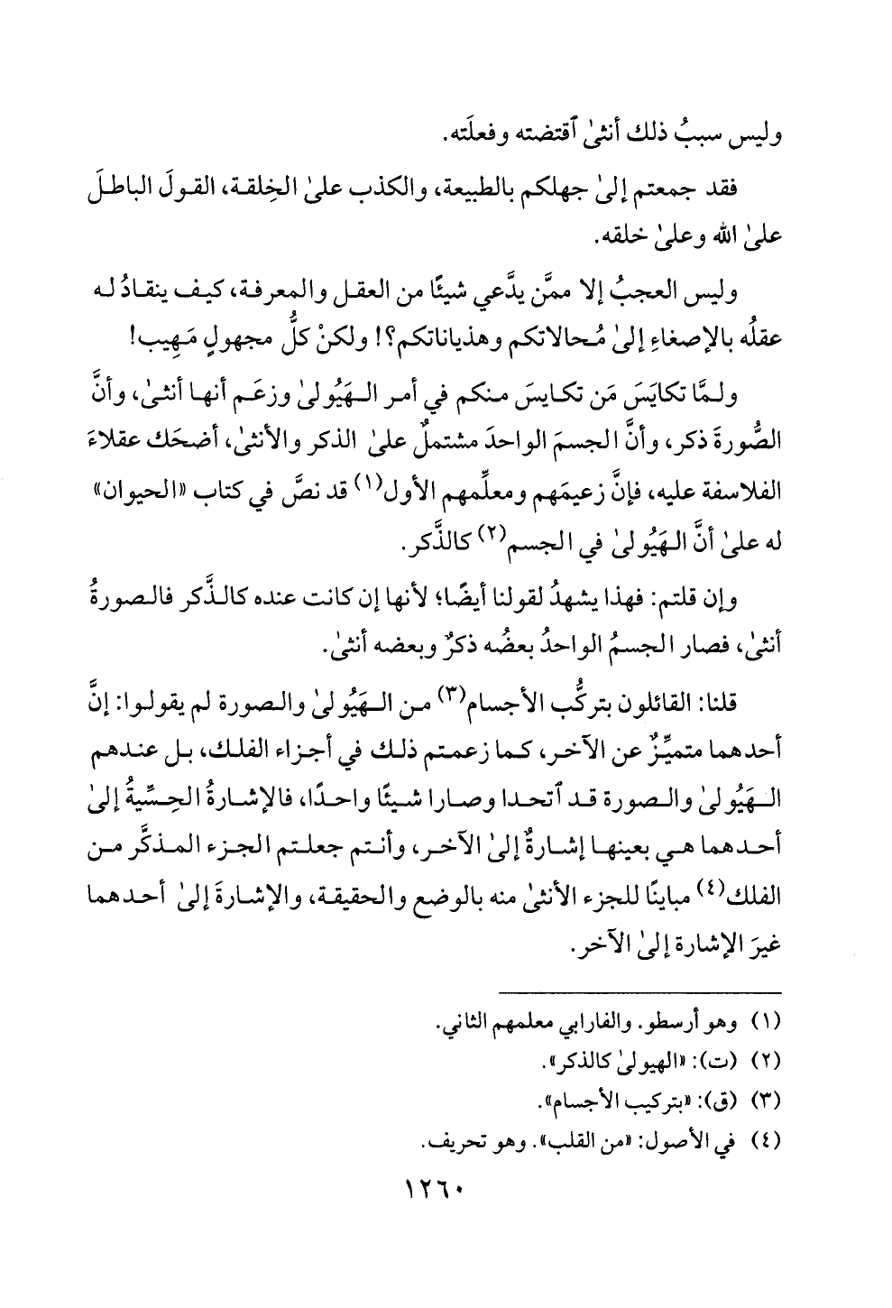 قلنا: القائلون بتركب الاجسام (3) من الهيو لى والصورة لم يقولوا: إ ن