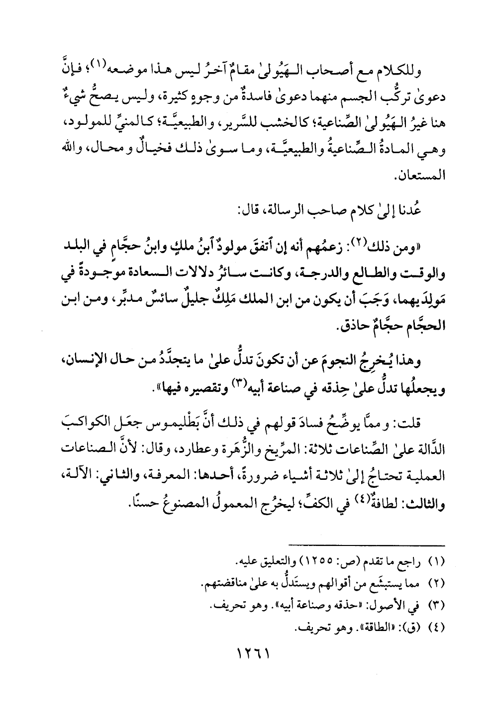 قلت: ومما يوضح فساد قولهم في ذلك أن بطليموس جعل الكو كب
