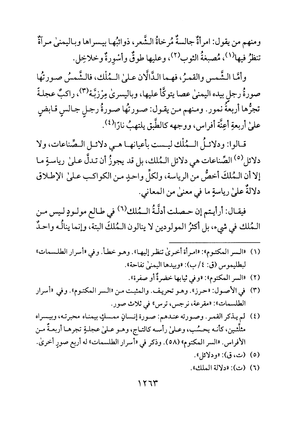 (1) " لسر المكتوم ": "امراة اخرى تنظر إليها". وهو خطأ. وفي " ا سرار الطلسمات "