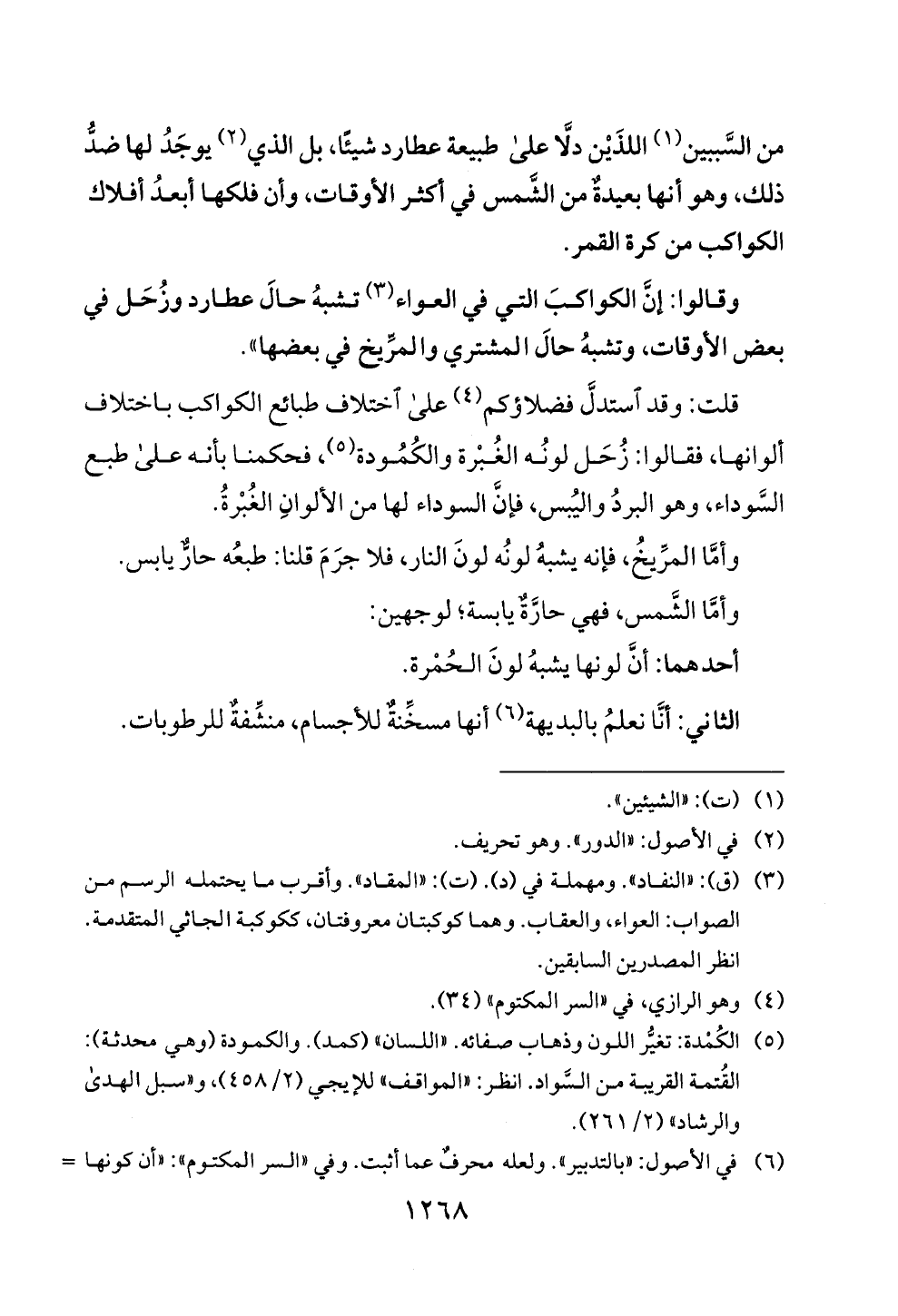 قلت: وقد آستدل فصلاوكم (4) على ختلاف طبائع الكواكب باختلاف
