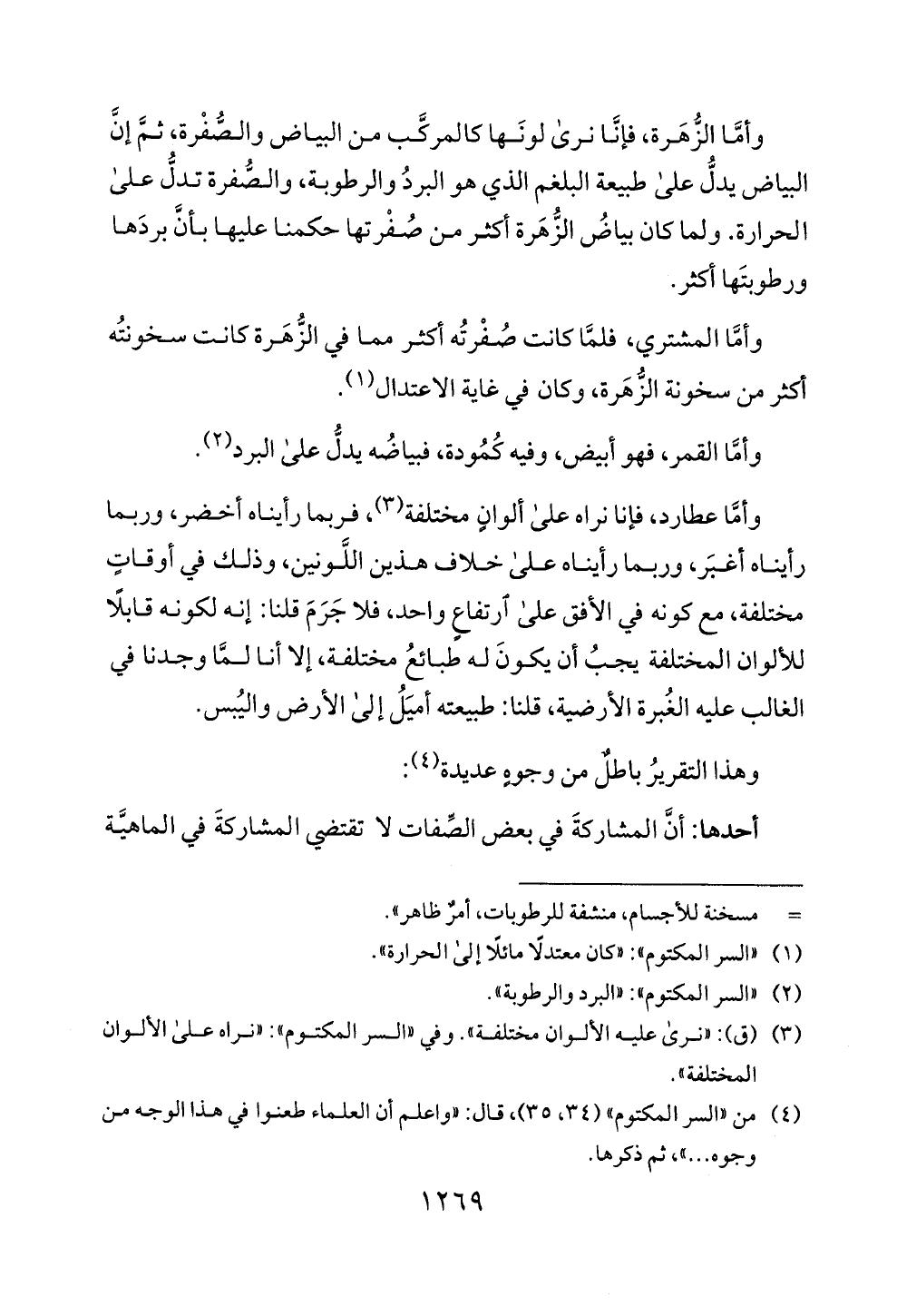 (1) "السر المكتوم ": "كان معتدلا مائلا إلى الحرارة ".