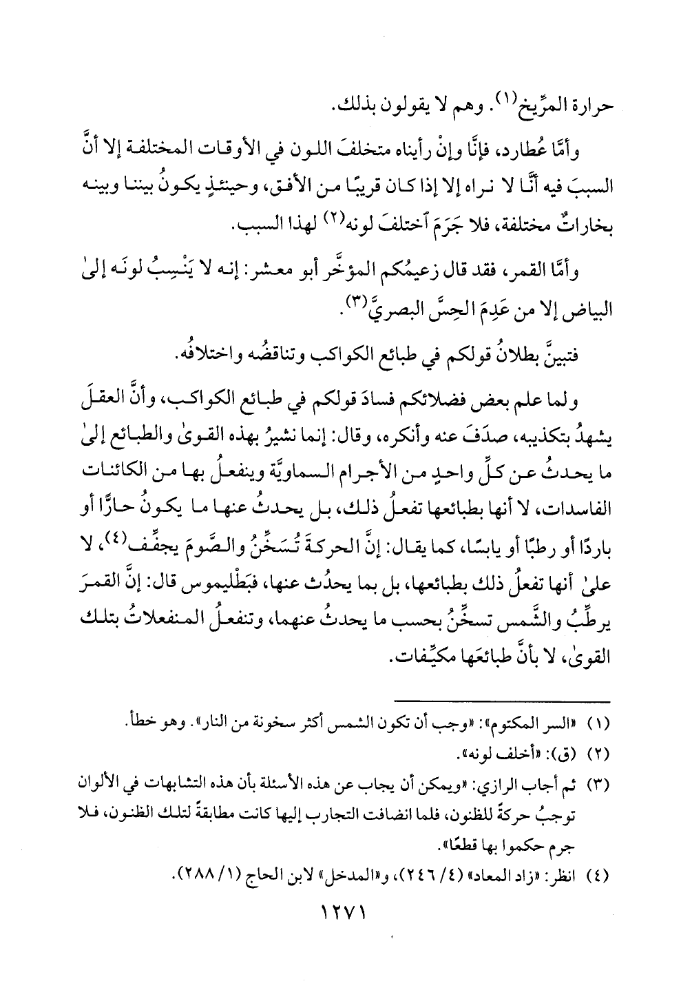 (1) " السر ا لمكتوم ": " وجب ان تكون الشمس اكثر سخونة من النار". وهو خطأ.