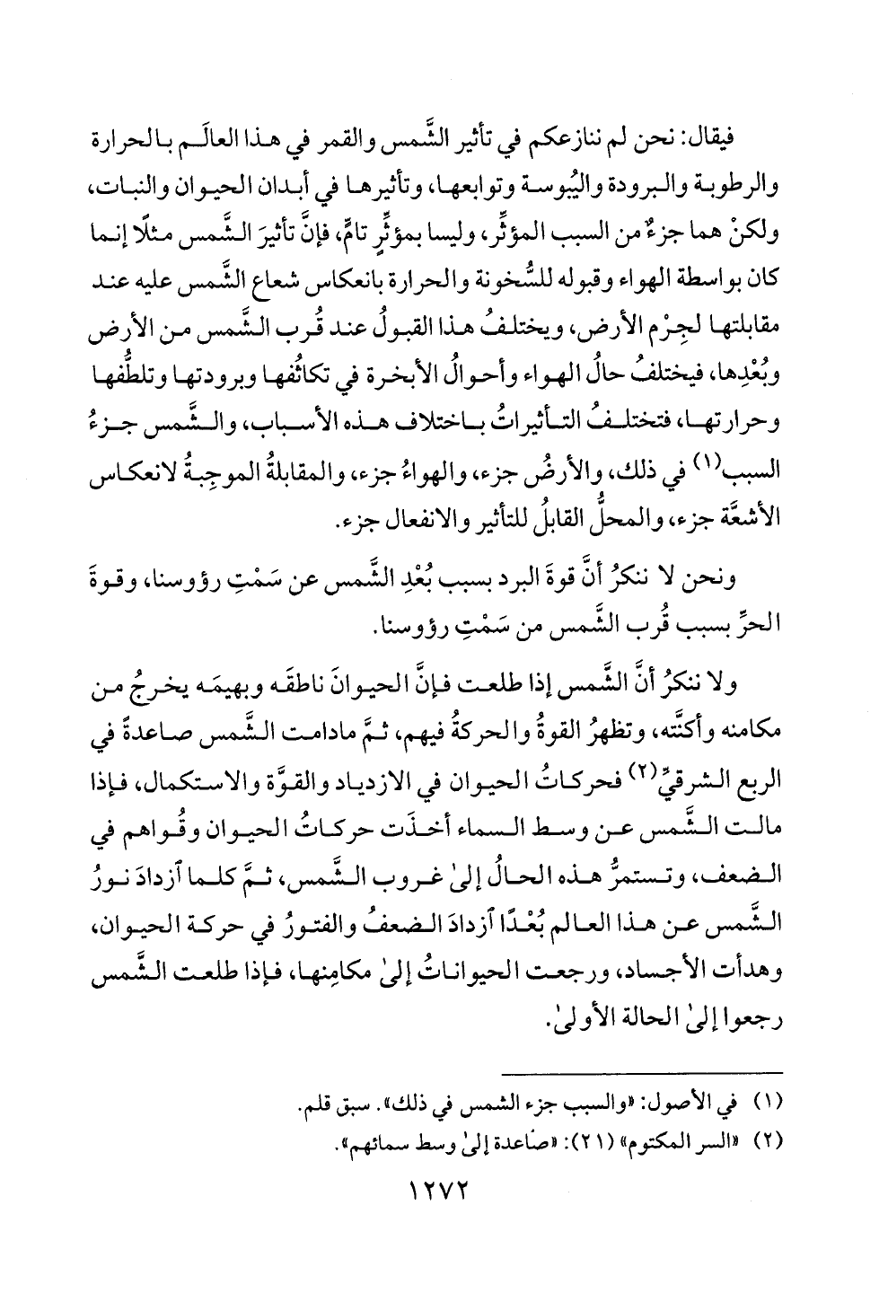 (1) في الاصول: "والسبب جزء الشمس في ذلك". سبق قلم.