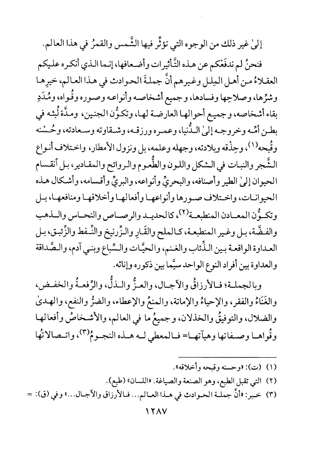 إ لى غير ذلك من الوجوه التي تؤثر فيها الشمس والقمر في هذا العا لم.