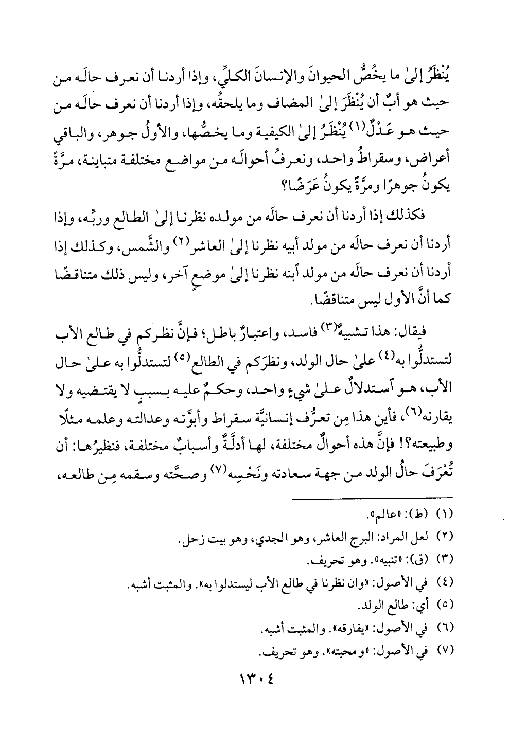 فيقال: هذا تشبيهلأ 3) فاسد، واعتبار باطل؛ فإن نظركم في طالع الاب