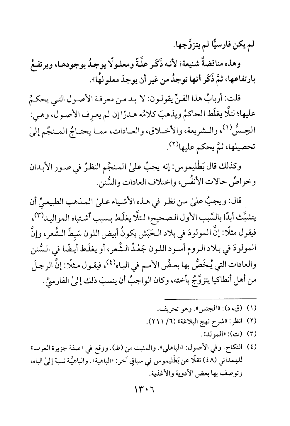 ا لحس! (1)، والشريعة، وا لاخلاق، والعادات، مما يحتاج ا لمنجم إ لى