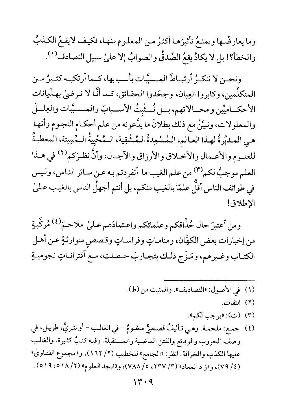 والمعلولات، ونبين مع ذلك بطلان ما يدعونه من علم أحكام النجوم و نها