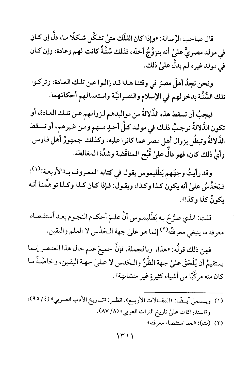 وقد رأبت وجههم بطليموس يقول في كتابه ا لمعروف ب"الأربعة) " (1):