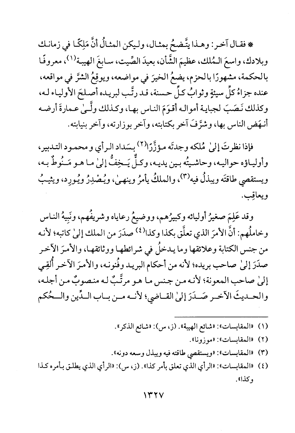 (3) "المقابسات ": "ويستقصي طاقته فيه ويبذل وسعه دونه ".