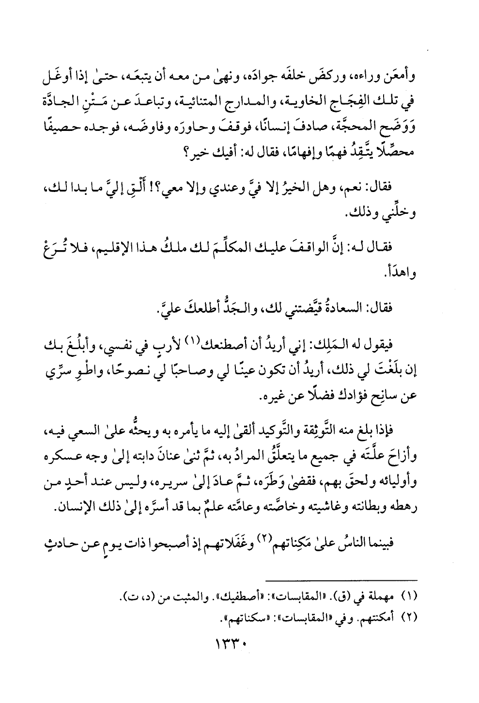 (1) مهملة في (ق). "المقابسات ": "أصطفيك ". والمثبت من (د، ت).