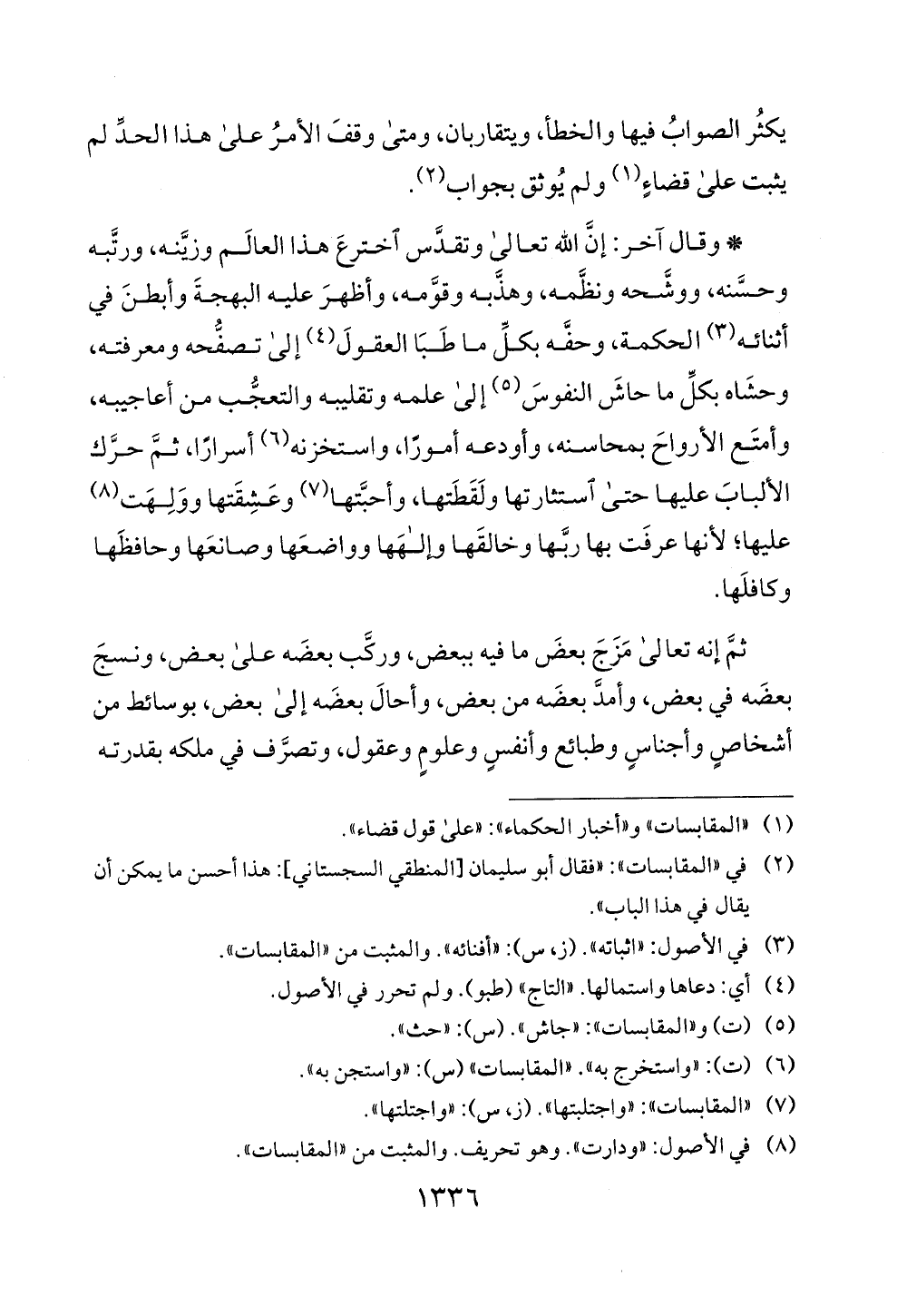 (2) في " المقابسات ": "فقال ابو سليمان [المنطقي السجستاني]: هذا احسن ما يمكن أ ن