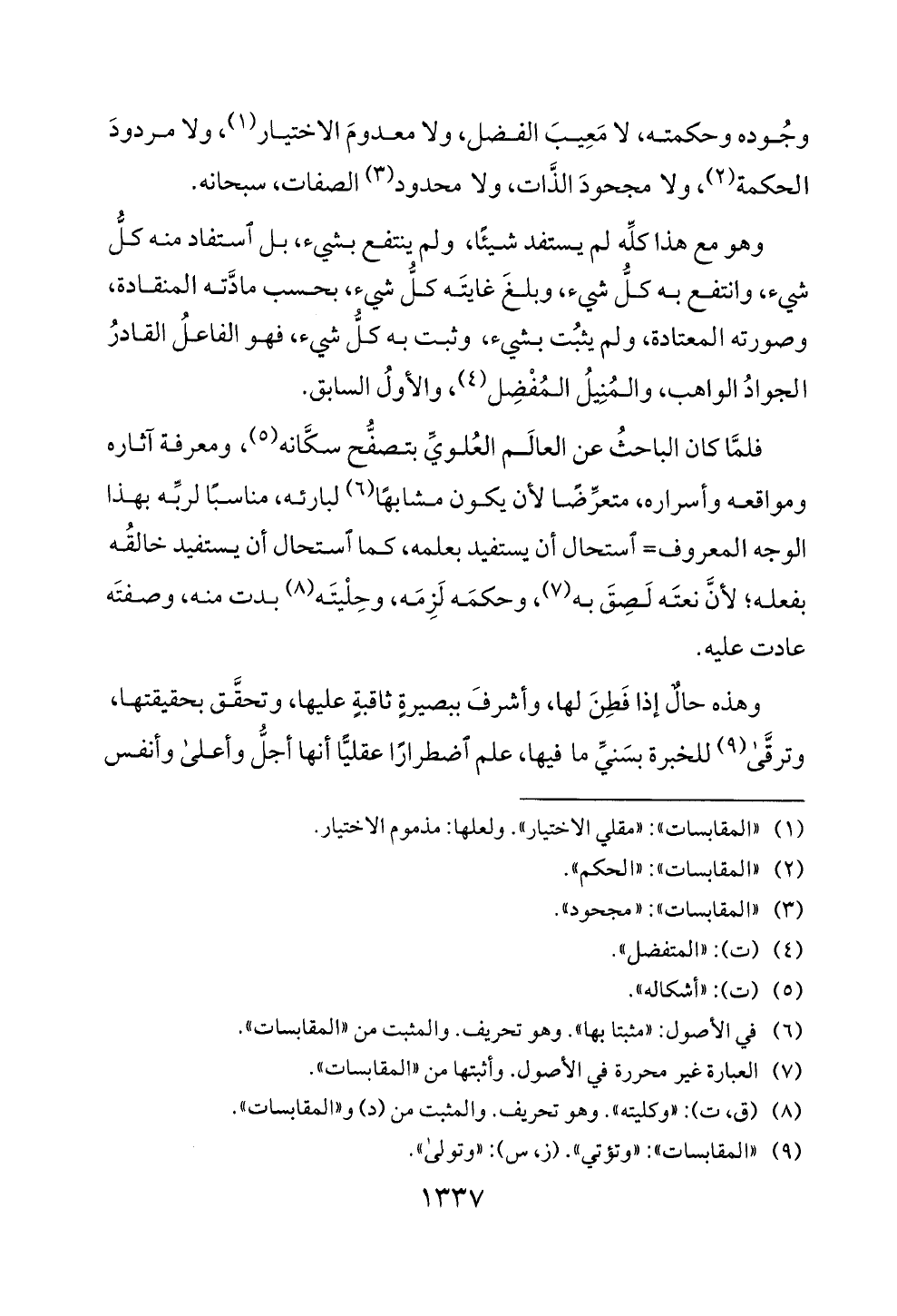 (1) " المقابسات ": " مقلي الاختيار". ولعلها: مذموم الاختيار.