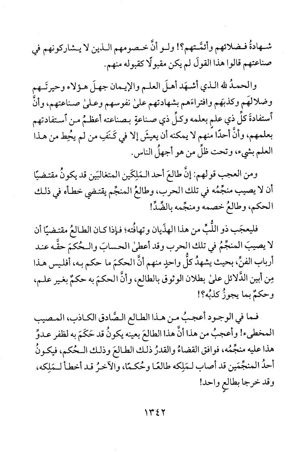 ومن العجب قولهم: إن طالع أحد الملكين المتغالبين قد يكون مقتضيا