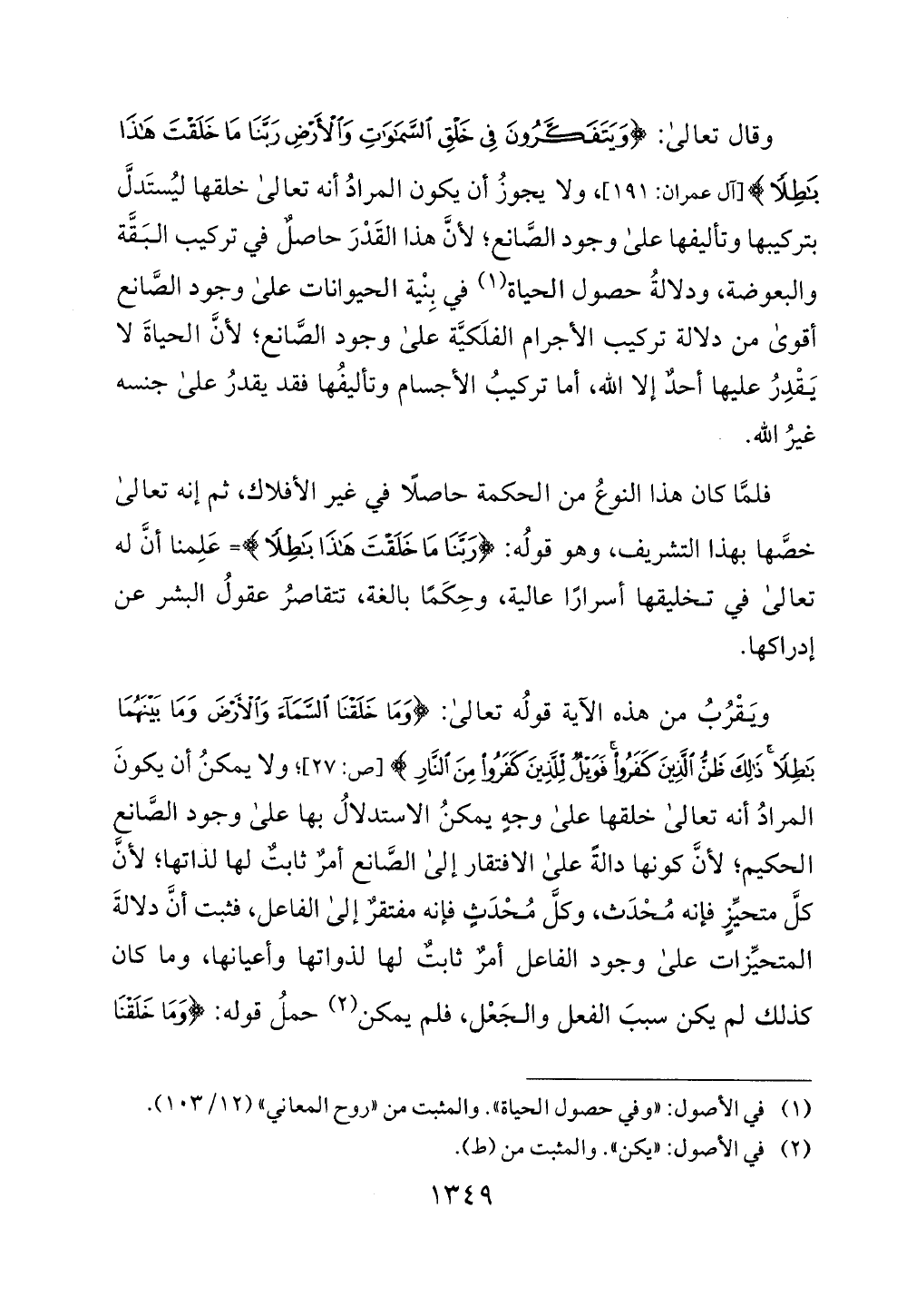 وقال تعا لى: <ويتفنيوون فى طق السبزت والأرض رتنا ما خلقت هذا