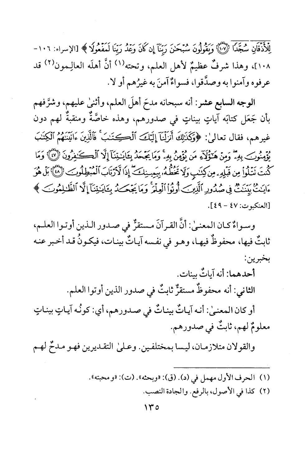 108]، وهذا شرف! عظيم لاهل العلم، وتحته (1) ان اهله العالمون (2) قد