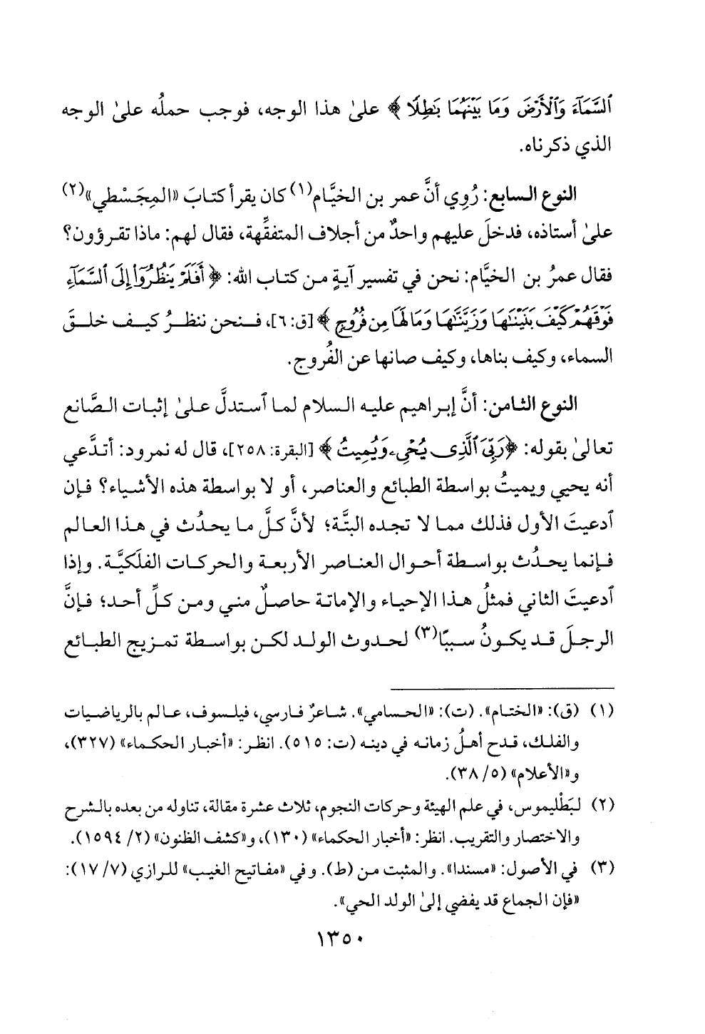 النوع السابع: روي ان عمر بن الخيام (1) كان يقرأ كتاب "المجسطي " (2)