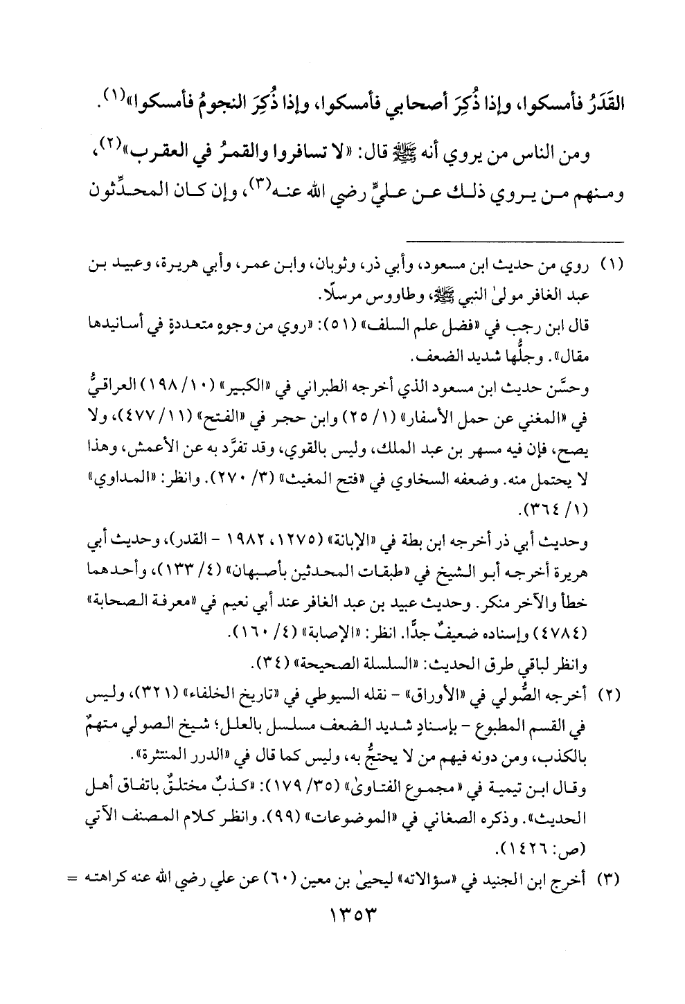 القدر فامسكوا، وإذا ذكر أصحا بي فأمسكوا، وإذا ذكر النجوم فامسكوا" (1).