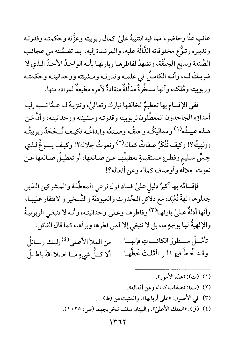 (2) (ت): " صفات كماله وعن أفعاله ".